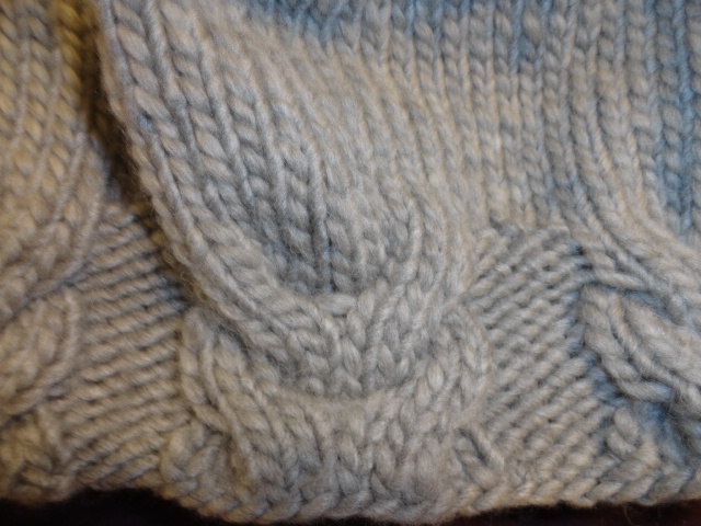 This hat has cabled ribbing and is knitted with bulky yarn. I love working with bulky yarn because it’s quick to knit–I am an instant gratification kinda gal (no sweaters for me in the near future).