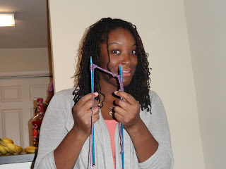 After dinner, we began our knitting. Since the girls have never knitted before, last night we learned how to cast on, knit and purl.