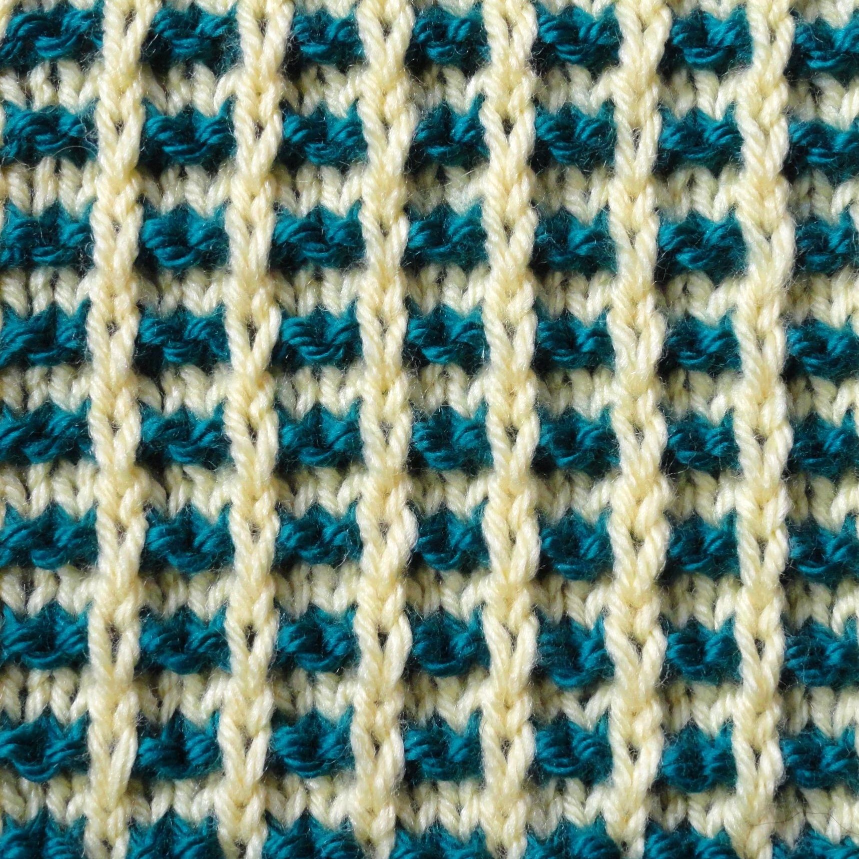 This multi-colored stitch pattern involves the use of slip stitch techniques throughout the work. Knitted in a multiple of 3 stitches plus 3 and a fairly fast knit, the Slipped Stitch Squares pattern is not prone to curled edges, thus making it one of the most low-maintenance knitting patterns. The design of this pattern allows it to knit up into a thick panel – perfect for blankets and throws.