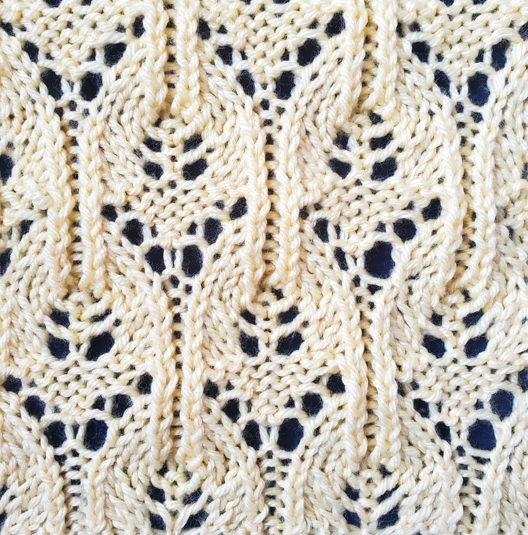 This large-panel stitch pattern is a twenty-four-row repeat and is knitted in a multiple of ten stitches plus one. Because of its large number of stitches and its many row repeats, the Chandelier Lace Stitch falls in the advanced skill level category. Its elegant lace design makes this stitch pattern perfect for those looking to add a touch of femininity to their knitting project.